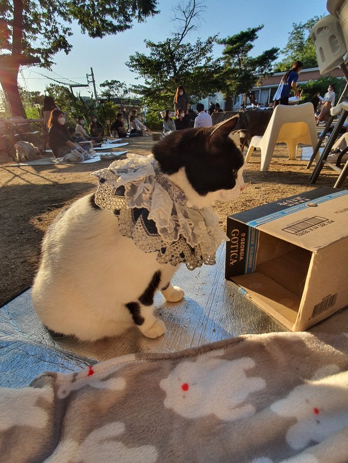 Σου δίνουν και κουβερτούλα αν θες, γιατί καθώς έπεφτε ο ήλιος έκανε λίγο ψύχρα, και πάνω σε αυτά που κάθεσαι υπάρχουν χαρτοκούτι ή χαρτοσακούλες που πάνε οι γάτες.