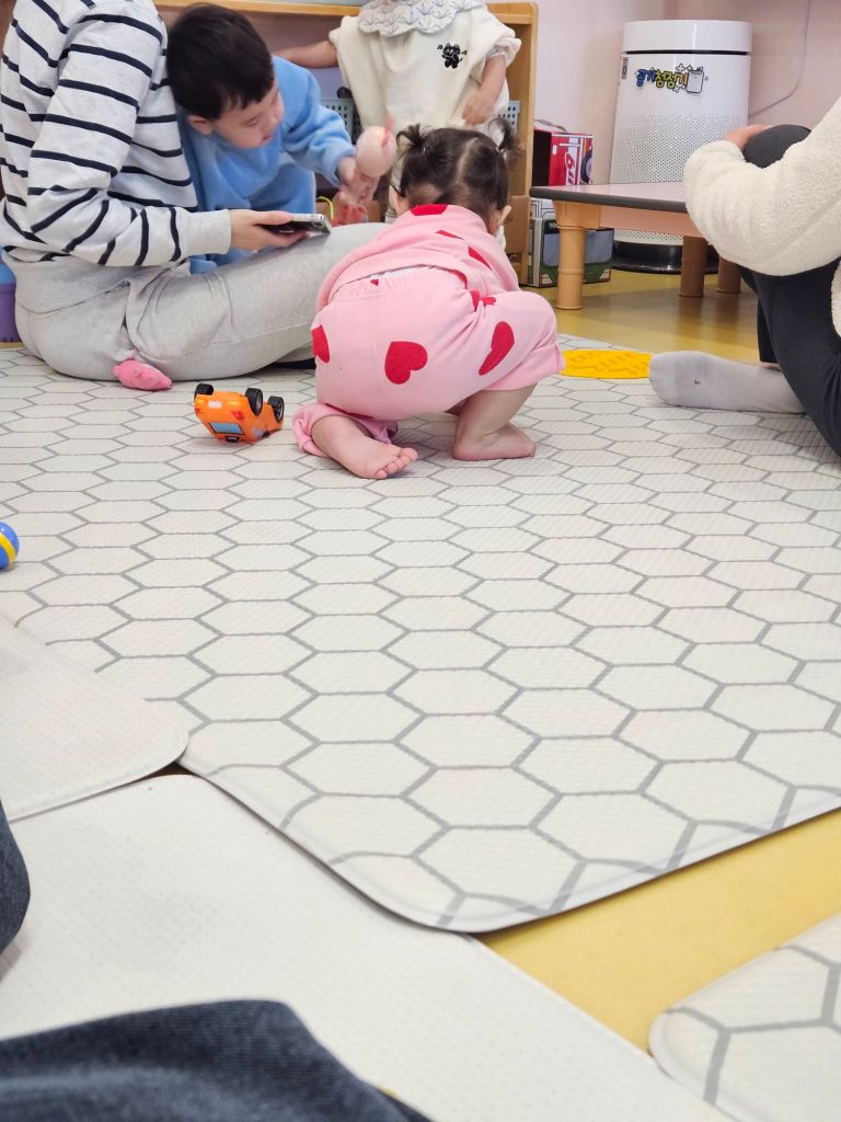 Κάποια παιδάκια πάνε να της πιάσουν το χέρι και αυτή είναι σε φάση «μη με πιάνετε εεεε». Φυσικά μιλάμε για παιδάκια που είναι όλα σε φάση προσαρμογής και τα περισσότερα είναι και πρώτα παιδιά, οπότε το να μοιράζονται πράγματα δεν είναι ακριβώς το δυνατό τους σημείο ακόμη.